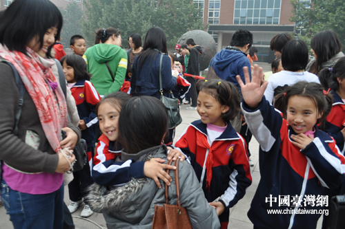 圖為玉樹孩子與北大學(xué)子們依依送別。 (宋慶齡基金會志愿者 許慶慶 攝)