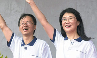 宏達電董事長王雪紅(右)以私人名義入股香港TVB,手機女皇變身媒體皇后。圖左為王雪紅的先生威盛總經理陳文琦。(圖片來源:臺灣《聯(lián)合報》)