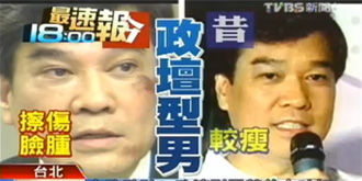 政壇帥哥黃義交跑攤跌倒,臉上瘀青數(shù)塊。(圖片來自臺灣媒體)