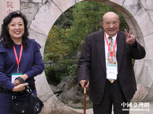 在工作人員的幫助下,王老先生游覽完天河潭,他和女兒都興奮不已。(貴陽市臺辦 胡珊珊 攝)