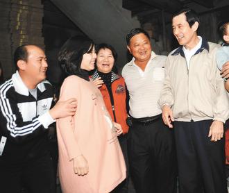馬英九昨晚前往臺(tái)中葡萄農(nóng)詹德森家作客,詹家二女兒快生了,堅(jiān)持看到馬英九才要去生小孩,讓馬很感動(dòng)。(圖片來源:臺(tái)灣《聯(lián)合報(bào)》)
