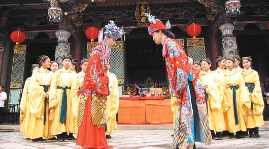 臺(tái)北孔廟首次舉行儒家婚禮。(圖片來自臺(tái)灣媒體)