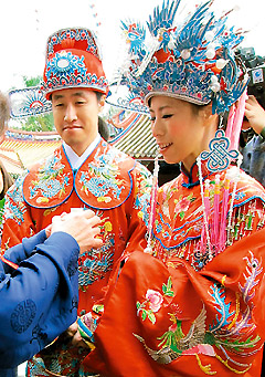 中國臺(tái)灣網(wǎng)12月25日消息 據(jù)臺(tái)灣《聯(lián)合報(bào)》報(bào)道,臺(tái)北市孔廟昨天破天荒舉行儒家婚禮,在臺(tái)灣民政部門負(fù)責(zé)人黃呂錦茹主證婚下,曾在孔廟擔(dān)任禮生的日本籍新郎水口拓壽,迎娶臺(tái)灣美嬌娘簡(jiǎn)秀文。未來孔廟也將以此為藍(lán)本,開放民眾申請(qǐng)儒家婚禮。