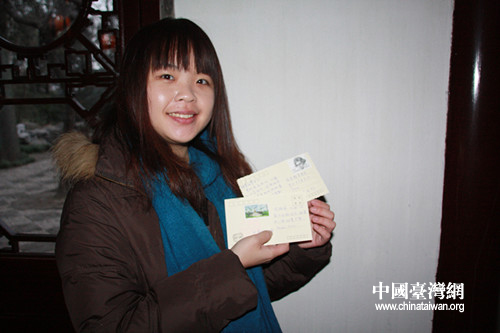 臺灣成功大學(xué)學(xué)生楊雅嵐寄給臺灣朋友的明信片。(中國臺灣網(wǎng) 栗琰 攝)