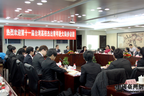 “第十一屆臺灣高校杰出青年赴大陸參訪團(tuán)”應(yīng)中華中山文化交流協(xié)會邀請,來大陸進(jìn)行參訪。參訪團(tuán)一行37人,由臺灣中華兩岸和平促進(jìn)會會長馮滬祥擔(dān)任名譽(yù)團(tuán)長,陳長風(fēng)擔(dān)任團(tuán)長,是今年首個(gè)來大陸參訪的臺灣團(tuán)體,在接下來的行程中,參訪團(tuán)還將拜會北京有關(guān)部門,并到河南、四川等地進(jìn)行參訪。