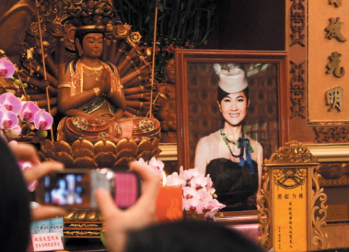 鳳飛飛病逝,不少歌迷昨天前往桃園縣大溪鎮(zhèn)佛光山寶塔寺追思。(圖片來源于:臺灣《聯(lián)合報》)