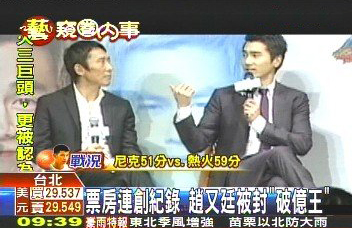 票房連創(chuàng)紀(jì)錄 趙又廷被封“破億王”(圖片來源:臺(tái)灣TVBS電視臺(tái))
