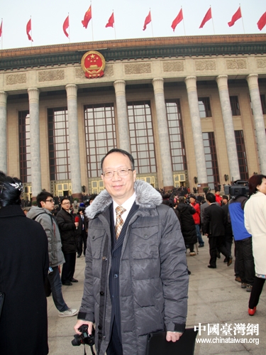 十一屆全國人大五次會議5日上午9時在北京開幕。圖為臺籍代表陳耀中在大會堂前留影。(中國臺灣網(wǎng) 王偉)