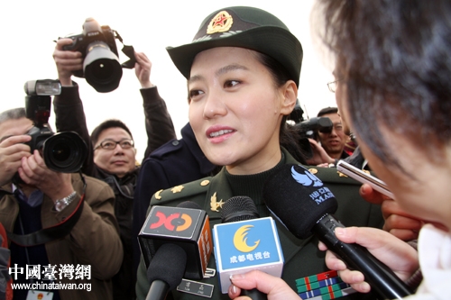 十一屆全國人大五次會議5日上午9時在北京開幕。圖為解放軍代表譚晶進入會場前接受媒體采訪。(中國臺灣網(wǎng) 王偉)