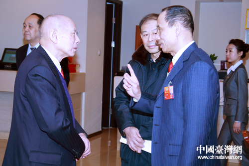 兩會(huì)代表委員在黃埔軍校同學(xué)會(huì)兩會(huì)代表、委員聯(lián)誼招待會(huì)上交談。(中國(guó)臺(tái)灣網(wǎng) 王偉 攝)