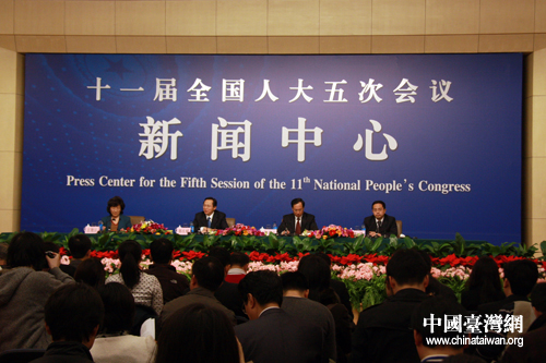 農(nóng)業(yè)部總經(jīng)濟(jì)師、新聞發(fā)言人陳萌山在十一屆全國(guó)人大五次會(huì)議記者會(huì)上,回答臺(tái)灣工商時(shí)報(bào)記者的提問(wèn)。(中國(guó)臺(tái)灣網(wǎng) 王偉 攝)
