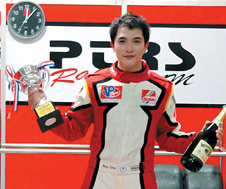 邱澤在珠海三角超級賽車節(jié)勇奪獎杯。(圖片來源:臺灣《聯(lián)合報》)