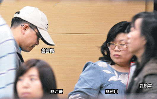 臺師大教授簡芳菁(左前)、臺大助理教授曾智揚(后左)、臺大助理教授簡盟月(后右)與臺師大教授孫瑜華(前右)等4人遭檢方復(fù)訊后交保。(圖片來源:臺灣《聯(lián)合報》)