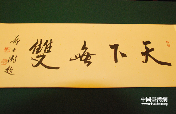 蘇士澍先生題寫的“天下無雙”(中國臺灣網(wǎng) 劉瑩 攝)
