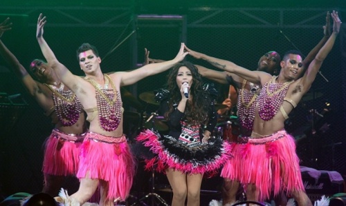 妖嬈猛男相伴,張惠妹惹火獻(xiàn)唱。(圖片來(lái)源于:臺(tái)灣《聯(lián)合報(bào)》)