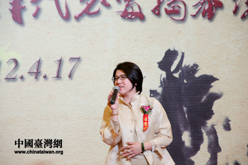 臺(tái)灣工業(yè)銀行集團(tuán)策略長駱怡君在揭幕儀式上致辭。(中國臺(tái)灣網(wǎng) 楊麗 攝)