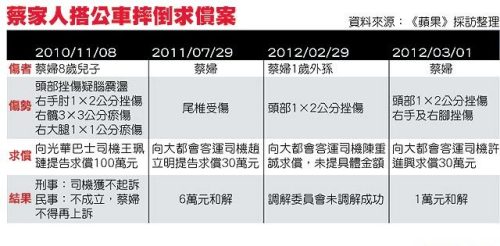 據(jù)報道,“跌倒姐”家住臺北市東湖地區(qū),平常以公交車為交通工具,前年她帶8歲兒子搭光華巴士公交車,不滿兒子摔倒受傷,憤而向女司機王珮璉求償100萬元。隔年7月、今年2月29日及3月1日,“跌倒姐”3度以大都會司機車速過快害她及外孫摔傷、擦傷為由,并附上診斷證明提告,其中2起要求賠償各30萬元,共計向司機索賠160萬元。