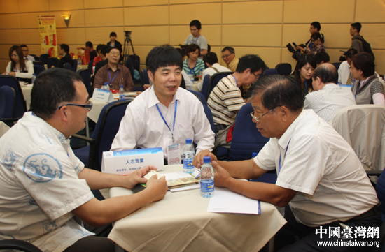25家臺灣本土企業(yè)與100多家大陸企業(yè)于海峽兩岸投資貿(mào)易對接會現(xiàn)場對接。(中國臺灣網(wǎng) 王思羽 攝)
