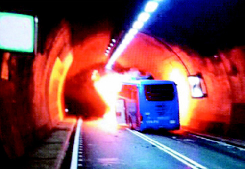 雪山隧道昨天發(fā)生火燒車事故。(圖片來(lái)源于:臺(tái)灣《聯(lián)合報(bào)》)