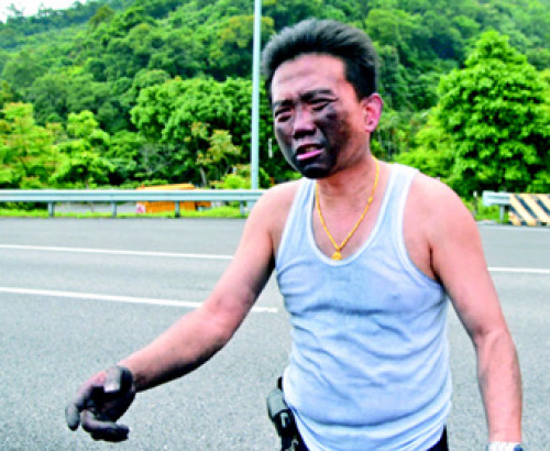 客運(yùn)司機(jī)滿臉熏黑,被嗆傷。(圖片來(lái)源于:臺(tái)灣《聯(lián)合報(bào)》)