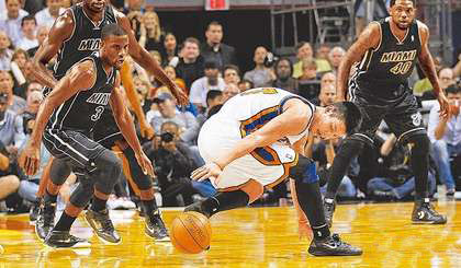 中國(guó)臺(tái)灣網(wǎng)5月9日消息 據(jù)臺(tái)灣媒體報(bào)道,明天上午7時(shí),季后賽1勝3敗的紐約尼克斯將在邁阿密出戰(zhàn)與熱火的第5戰(zhàn),背水一戰(zhàn)的壓力可想而知。雖然尼克斯教練伍德森(Mike Woodson)已將華裔“豪小子”林書(shū)豪(Jeremy Lin)排除在第5戰(zhàn)沙盤(pán)推演之外,但ESPN專欄作家里克·布徹(Ric Bucher)卻爆料,林書(shū)豪出戰(zhàn)的機(jī)率高達(dá)95%,因?yàn)閮?nèi)部消息傳出,高層逼豪小子帶傷上場(chǎng)。