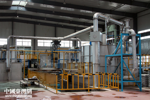 元泰達沫鋁廠是一家以生產(chǎn)泡沫鋁的高科技朝陽企業(yè)。這是一家援建項目,也是災(zāi)后廣元在恢復(fù)中推進轉(zhuǎn)型升級的成功實踐。圖為該企業(yè)生產(chǎn)線。(中國臺灣網(wǎng) 楊麗 攝)
