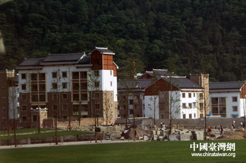 駛出北川老縣城遺址,路邊隨即展現(xiàn)的簇新羌族民居。(中國臺灣網(wǎng) 楊麗 攝)