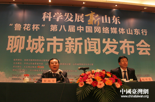 “科學發(fā)展新山東——第八屆中國網絡媒體山東行”聊城市新聞發(fā)布會現場。(中國臺灣網 郭瑩瑩 攝)