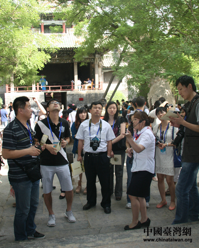 記者們?cè)谏疥儠?huì)館認(rèn)真聽(tīng)取講解員介紹。(中國(guó)臺(tái)灣網(wǎng) 郭瑩瑩 攝)