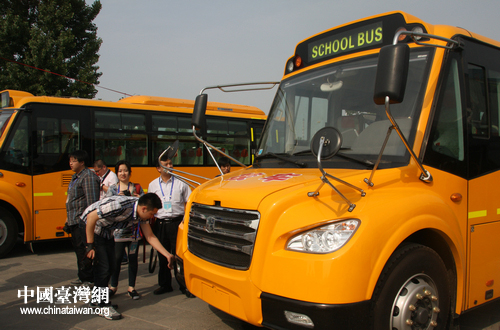 中通客車生產(chǎn)的校車得到了記者們的關(guān)注。(中國臺灣網(wǎng) 郭瑩瑩 攝)