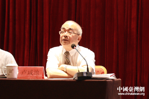 《臺(tái)灣會(huì)館與同鄉(xiāng)會(huì)》一書主編、北京市臺(tái)聯(lián)名譽(yù)會(huì)長(zhǎng)盧咸池在會(huì)上對(duì)新書做了詳細(xì)介紹。(中國(guó)臺(tái)灣網(wǎng) 郭慶娜 攝)