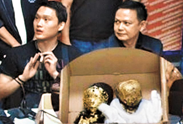 曼谷警方18日揭露走私鍍金嬰尸的恐怖案情,左方男子疑為臺(tái)灣嫌犯周學(xué)權(quán)(圖片來自臺(tái)媒)