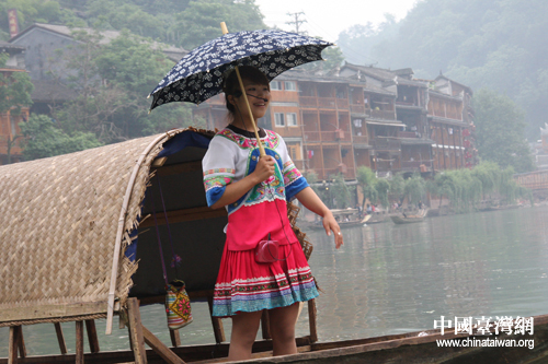 苗族女孩沱江放歌 (中國(guó)臺(tái)灣網(wǎng) 張曉靜 攝)