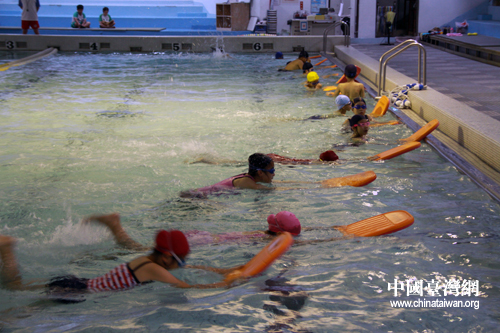 臺灣的小學(xué)生幾乎都會游泳,游泳運動是他們的必修課程。幸安小學(xué)非常注重學(xué)生體育運動項目如田徑、乒乓球、足球、游泳等方面的培養(yǎng),另外還設(shè)有圍棋、象棋、棒球、溜冰、跆拳道等其他運動項目,為學(xué)生們提供多元學(xué)習(xí)發(fā)展的機會。在參觀幸安小學(xué)游泳館時,許多大陸小學(xué)的校長都連連稱贊這種有益身心健康發(fā)展的特色教學(xué)。