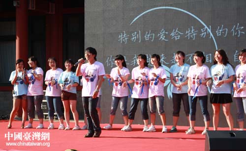 來自中國地質(zhì)大學(xué)的周舟和志愿者們共同演唱《特別的愛給特別的你》(中國臺灣網(wǎng) 孟雅詩 攝)