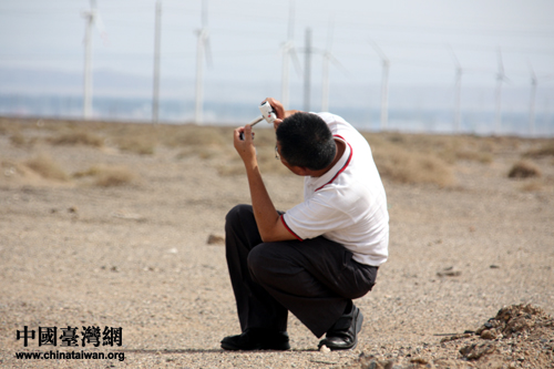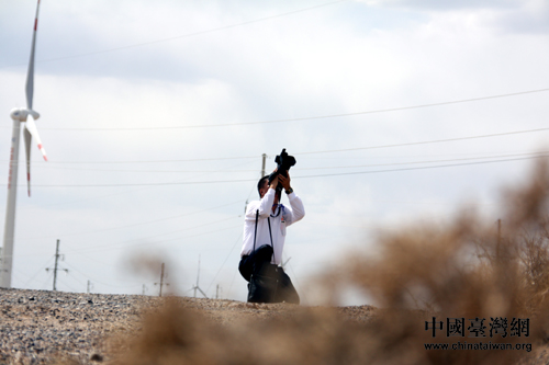 臺(tái)灣天下新聞網(wǎng)采訪副主任劉朝發(fā)在拍攝風(fēng)電機(jī)組。(中國(guó)臺(tái)灣網(wǎng) 郜利敏 攝)