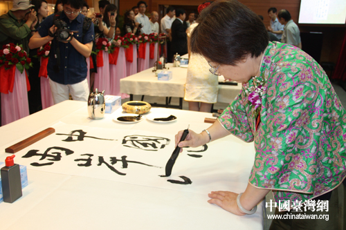 臺(tái)灣書法家現(xiàn)場(chǎng)潑墨,寫下“中國(guó)心、兩岸情”(中國(guó)臺(tái)灣網(wǎng) 陳寧 攝)