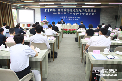 6月9日,由北京聯(lián)合大學臺灣研究院主辦的第二屆“兩岸青年學者論壇”在北京召開。來自海峽兩岸從事兩岸關系研究的青年學者40余人就“未來四年臺灣政治格局及兩岸關系發(fā)展”進行研討。(中國臺灣網(wǎng)記者 蕪同 攝)