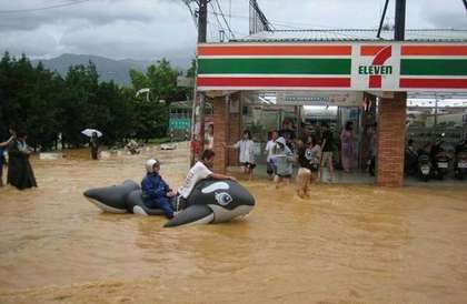 中國臺灣網6月12日消息 據臺灣媒體報道,今天臺灣籠罩在暴雨狀態(tài)中,就有民眾干脆騎乘游泳用“鯨魚”汽船,在街上“游”進便利超商,成為淹水中苦中作樂一景。