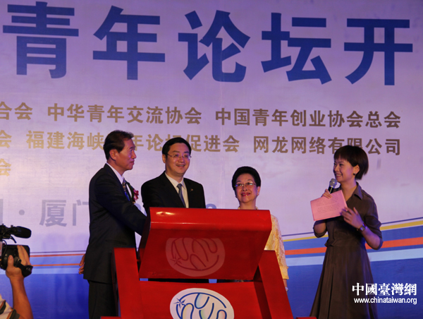 6月15日,團中央書記處常務書記、全國青聯(lián)主席王曉,中華青年交流協(xié)會創(chuàng)辦人李鐘桂博士和青年創(chuàng)業(yè)協(xié)會總會長、基泰建設股份有限公司董事長陳世銘先生共同啟動第十屆海峽青年論壇。(中國臺灣網(wǎng) 王思羽 攝)