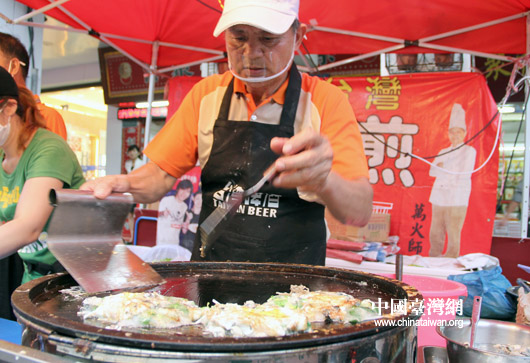 特色廟會上的臺南小吃受到食客追捧(中國臺灣網(wǎng) 楊麗 攝)