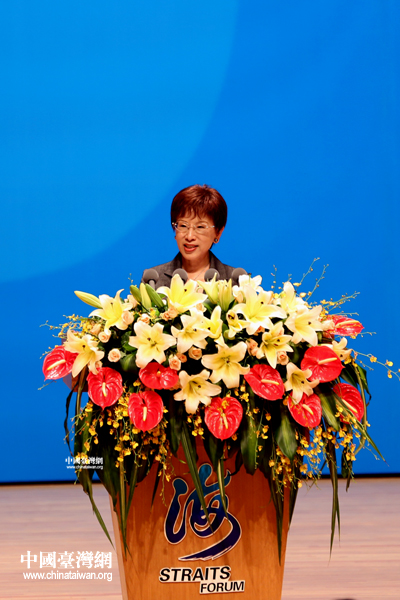 17日,第四屆海峽論壇大會(huì)在廈門國(guó)際會(huì)議中心舉行。圖為中國(guó)國(guó)民黨副主席洪秀柱在大會(huì)致辭。(中國(guó)臺(tái)灣網(wǎng) 王偉 攝)