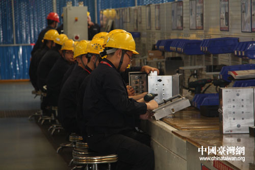 三一重工集團(tuán)的工人們正在進(jìn)行緊張有序的操作。(中國臺灣網(wǎng) 王君飛 攝)