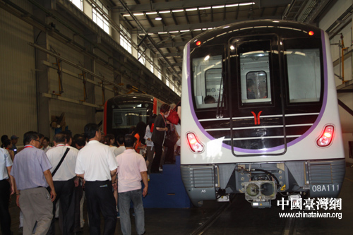 中國和平統(tǒng)一促進(jìn)會赴湘考察團(tuán)走進(jìn)南車株洲電力機(jī)車有限公司的生產(chǎn)車間。圖為南車株洲電力機(jī)車有限公司生產(chǎn)的地鐵。(中國臺灣網(wǎng) 王君飛 攝)