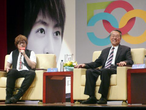 五月天阿信與宏碁創(chuàng)辦人施振榮進(jìn)行跨世代對(duì)話。(圖片來自臺(tái)媒)