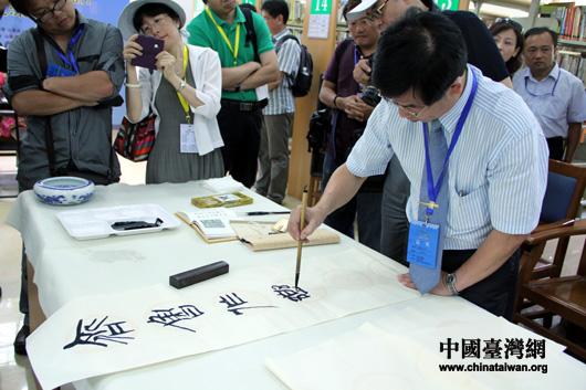 臺(tái)灣著名書法家陳志聲用篆書寫下對(duì)聯(lián)。(中國臺(tái)灣網(wǎng) 芮益芳 攝) 第1頁第2頁第3頁第4頁第5頁第6頁