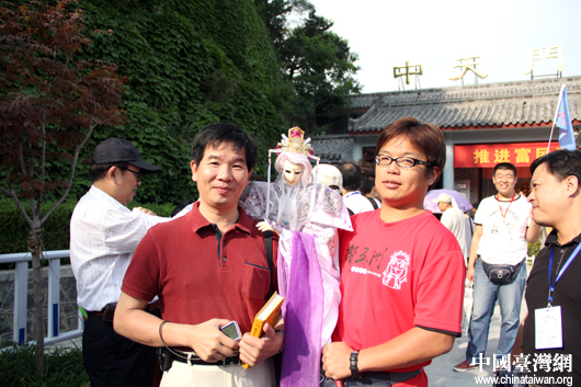 臺中聲五洲掌中劇團團長王英峻(圖右)帶著他的布袋戲主角游覽泰山,“我的男主角也登山泰山啦!”(中國臺灣網(wǎng) 芮益芳 攝) 第1頁第2頁第3頁第4頁