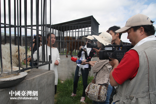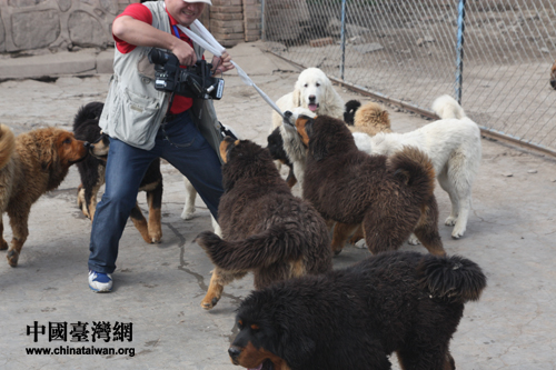 來自臺灣中國電視公司的臺灣記者“深入虎穴”,與藏獒斗智斗勇(中國臺灣網(wǎng) 陳寧 攝)