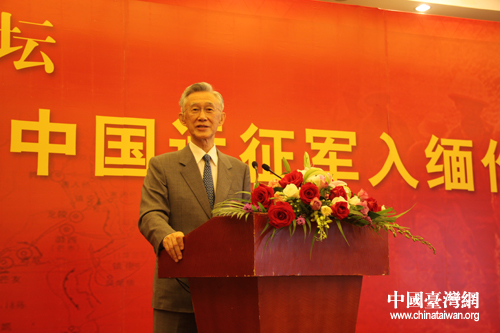黃埔軍校同學(xué)會(huì)會(huì)長林上元在論壇上致辭。(中國臺(tái)灣網(wǎng) 齊曉靖 攝)