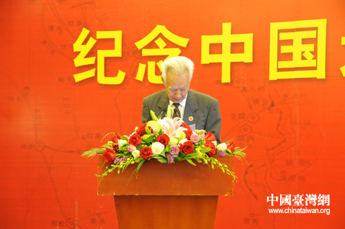 云南省黃埔軍校同學會副會長、遠征軍老戰(zhàn)士劉華致辭。(中國臺灣網(wǎng) 齊曉靖 攝)